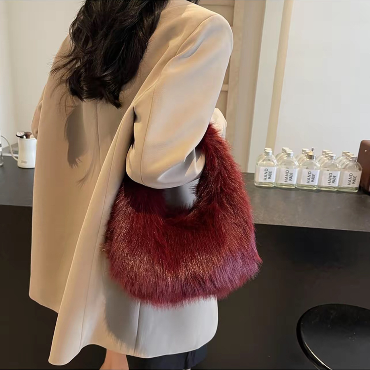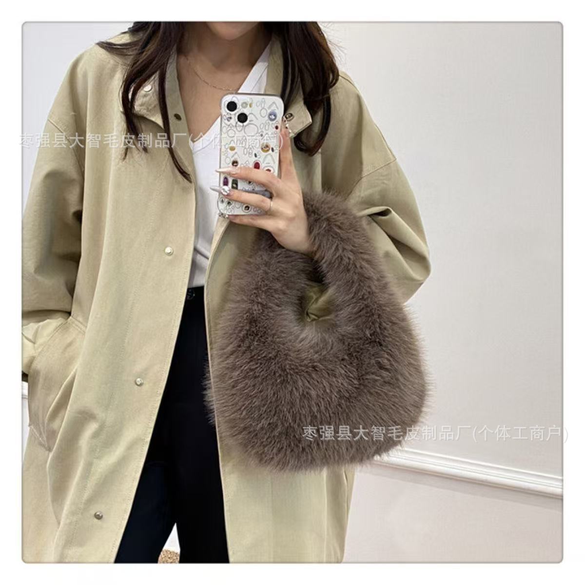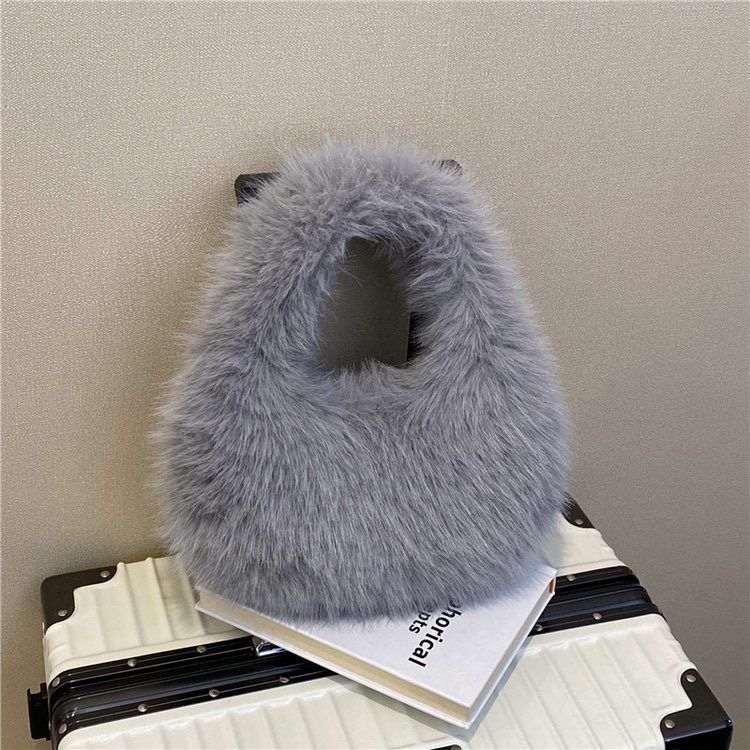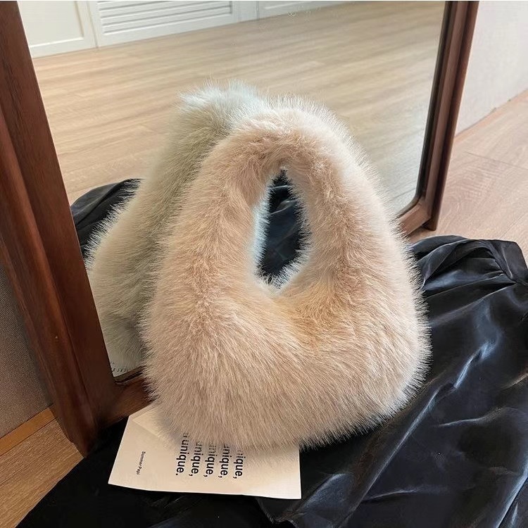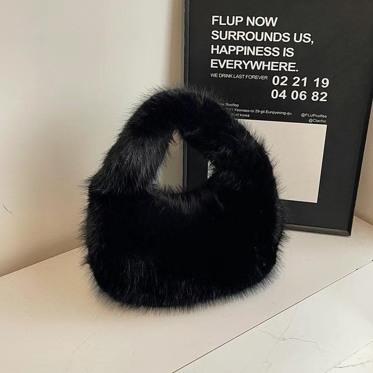 New Foreign Trade Imitation Fox Fur Small Bag Plush Underarm Single Shoulder Bag Handheld Storage Bag Autumn Winter Women's Handbag
