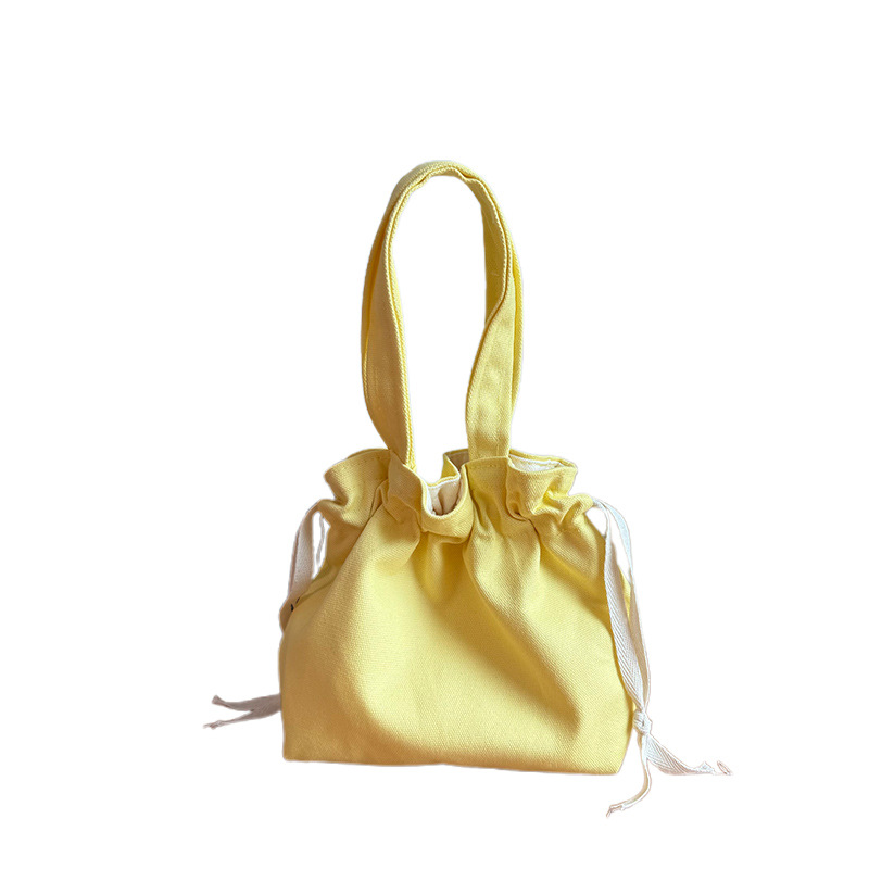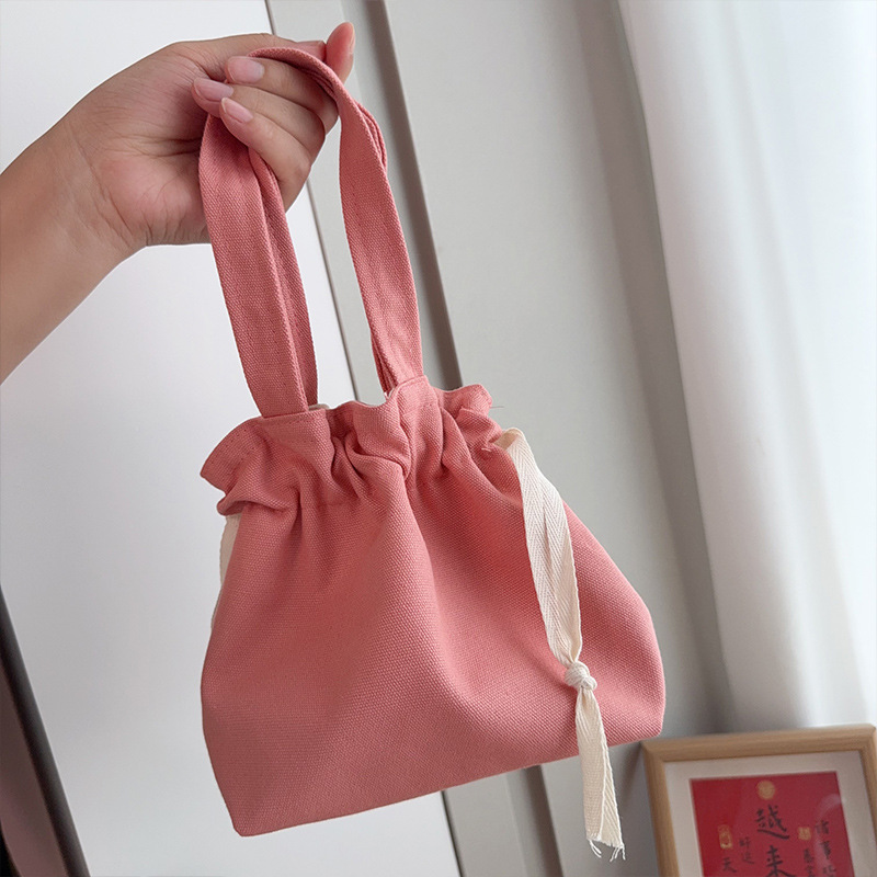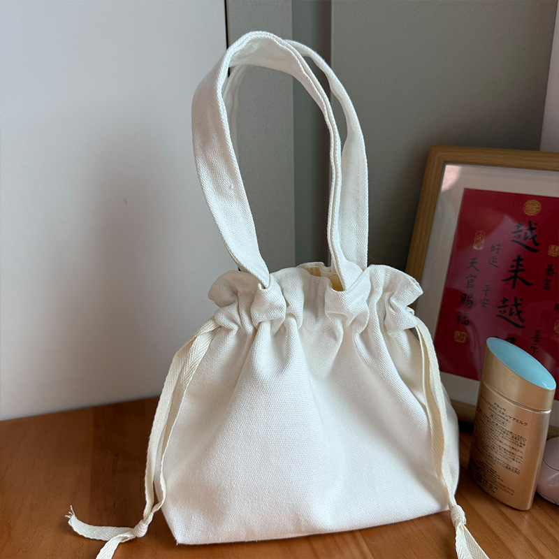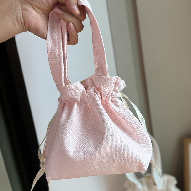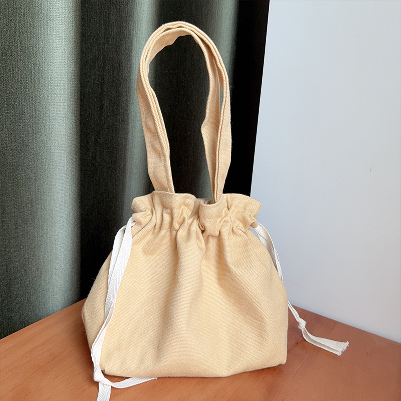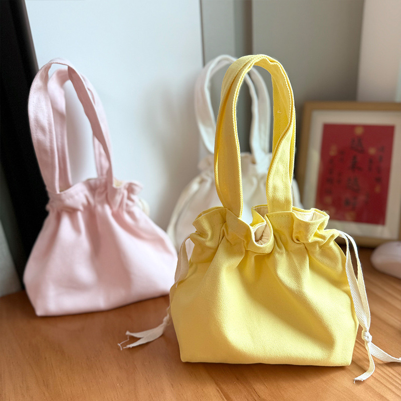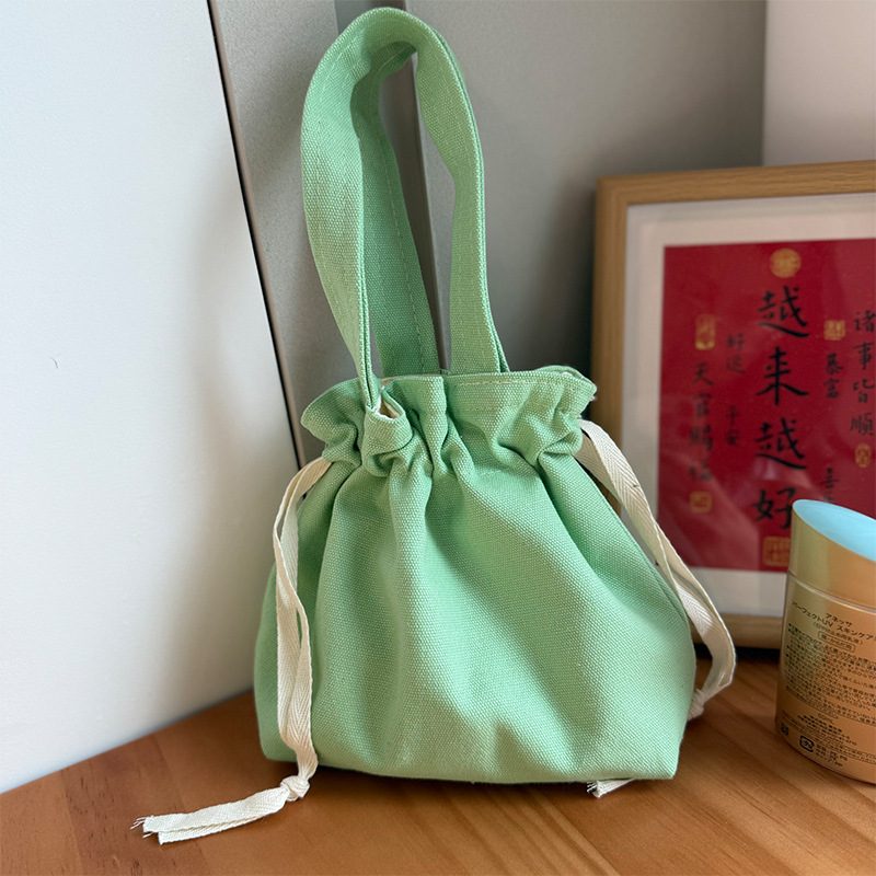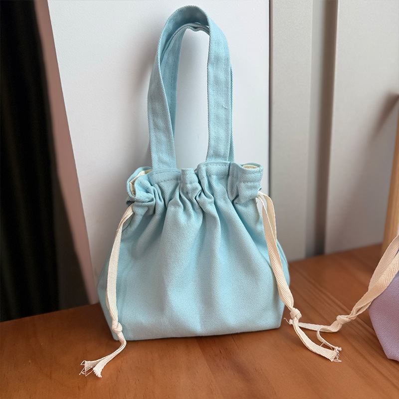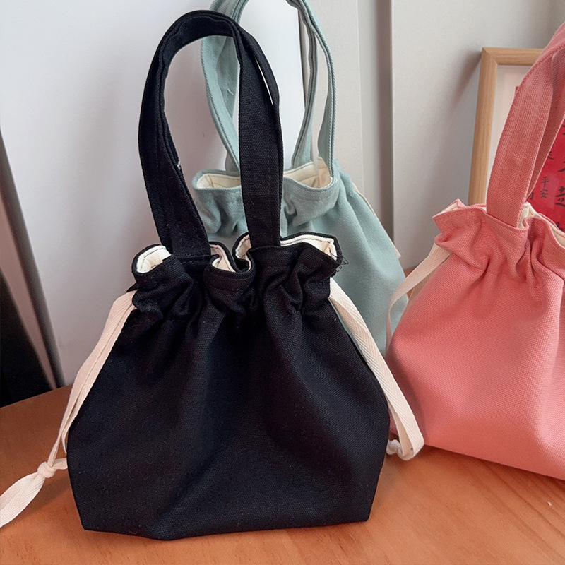 Handheld Bag Japanese Style Tote Lunch Bag Large Capacity Solid Color Drawstring Lunch Box Bag Wholesale Fresh Style Drawstring Canvas Bag