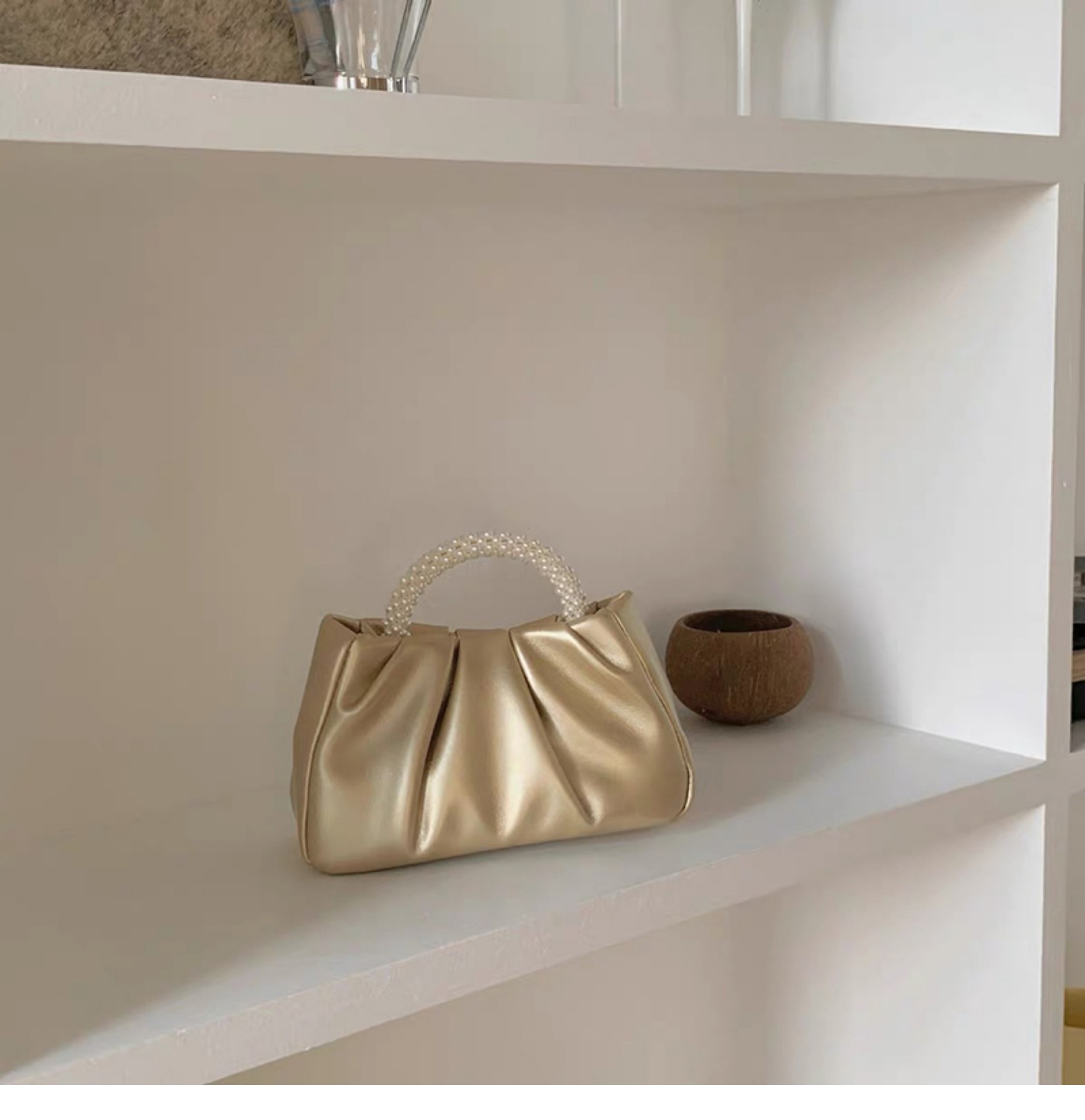 Sweet Girl Pearl Handbag Women Fashion Versatile Pleated Crossbody Cloud Bag Pearlescent Mini Phone Small Bag