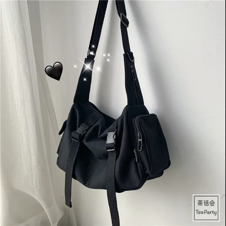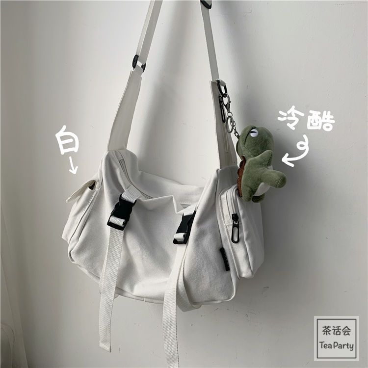 Korean Chic Retro Workwear Hong Kong Style Student Canvas Bag for Men Ulzzang Unisex Japanese Harajuku Women's Crossbody Bag