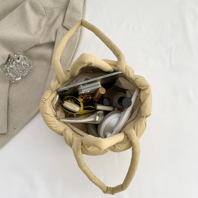 Down Cotton Jacket Bag for Women, New Niche Plaid Casual Versatile Handbag, Lazy Style Large Capacity Single Shoulder Tote Bag