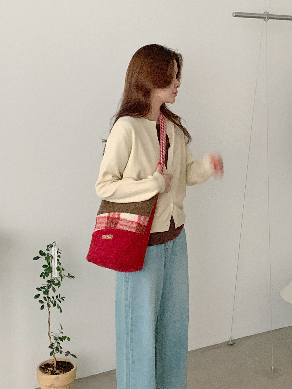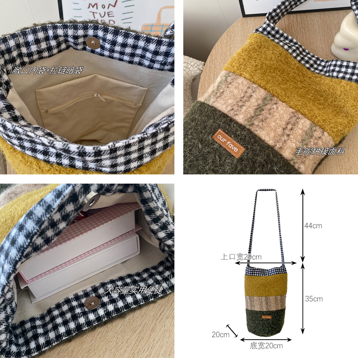 Winter New Barn Style Bucket Bag Fashion Plush Patchwork Color Block Round Bucket Bag Large Capacity Single Shoulder Crossbody Bag for Women
