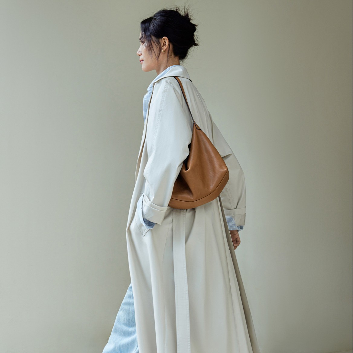 【Ximengyao Same Style】Qiu Zhen Vegetable-Tanned Cowhide Leather Underarm Classic Hobo Casual Commuter Genuine Leather Dumpling Women's Bag