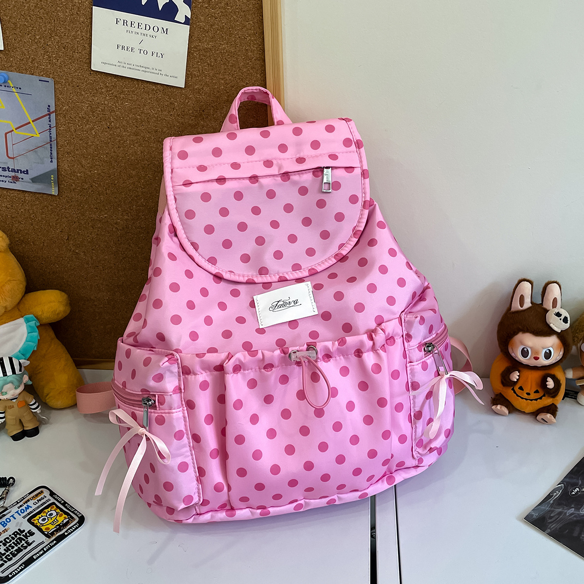 Cross-Border New Large Capacity Backpack for Women Fashionable Casual Versatile Short Trip Travel Backpack Polka Dot Personality Lightweight Bag